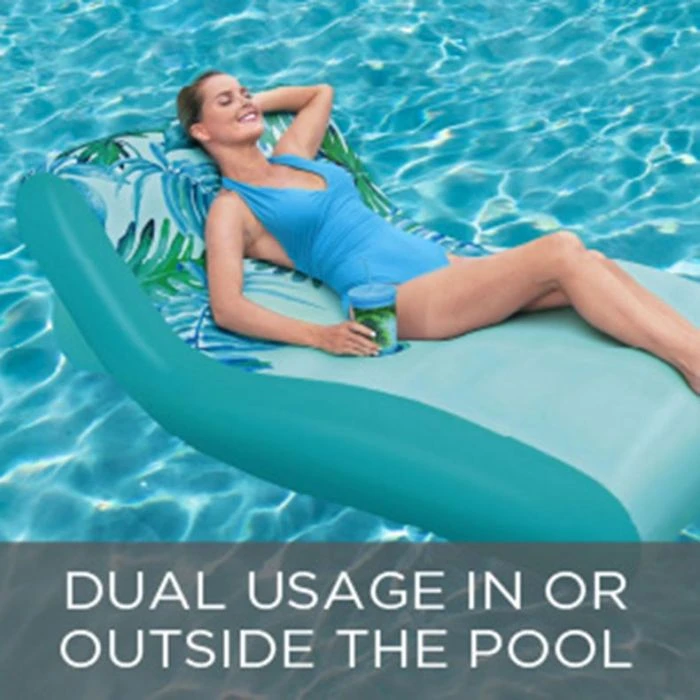 The 69×42 inch Luxury Lounge Float can be used to float in the pool or lounge on your deck or yard and features a cup holder. The plush fabric cover is removable and machine washable with UPF 50+ (highest available rating) for protection against sun damage. Float fits one adult with a weight capacity of 198 lbs.