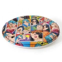 The POP Art Pool Island float has some pretty cool comic book graphics and perfect for pool time. This supersized sitting area has a wraparound grab rope with built-in grommets. Max of two users at a time. Weight capacity 396.8 lb. Puncture resistant vinyl material. Unique and modern design. Interlocking quick release valve.