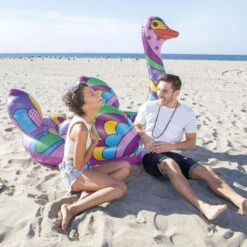 The POP Ostrich by is loud, bold and perfect for pool time. This supersized bird features eye-popping art with a long neck and large sitting area. Grab the heavy-duty hand grips and use the inflated feathers as guardrails. Three air chambers give this float consistent balance on the water and speed up inflation. Puncture resistant vinyl material. Unique and modern design. Heavy duty hand grips. Three air chambers.