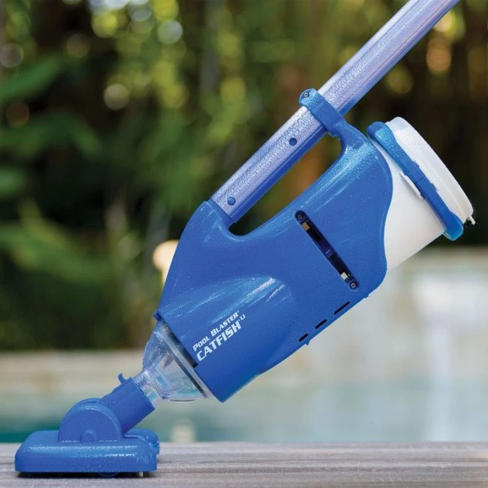 An easy to use hand held pool vacuum is just within your reach. Look no further than the Pool Blaster Catfish Li. Are you looking for a pool cleaner with no booster pump, no cumbersome hoses, and no fussing with filtration systems and skimmers? You came to the right place! This guy filters independently of that. It comes with reusable filter bags to trap and get rid of leaves, sand, and even algae. This hand held genius covers any size or surface type pool, spas, kiddie pools, and even Intex pools are covered! Not too many other cleaners can say that after all. This lightweight design at just 3.1lbs.is the perfect size to get the job done. You don’t have to break your back cleaning out your pool. It covers approximately 1102 square feet in an hour. The Catfish PPV pool cleaner moves quickly and efficiently so you can spend more time actually swimming in your pool instead of cleaning it! The size of the vacuum head rests at 8” as it paves its own cleaning path along your pool floor, walls, and water line. You can feel confident that dirt and debris don’t stand a chance! If you and your pool guests are ready to ‘dive in’ that’s great! It only takes 45 min when fully charged to completely clean the entire area of your pool.